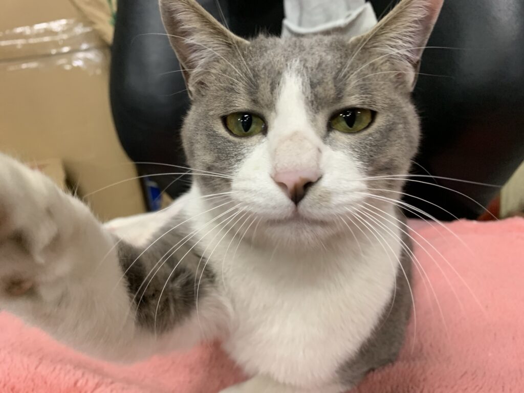 年齢はわかりませんがおそらく1歳の♂です。やんちゃでふてぶてしくてよく他のお猫様にちょっかいをかけています。